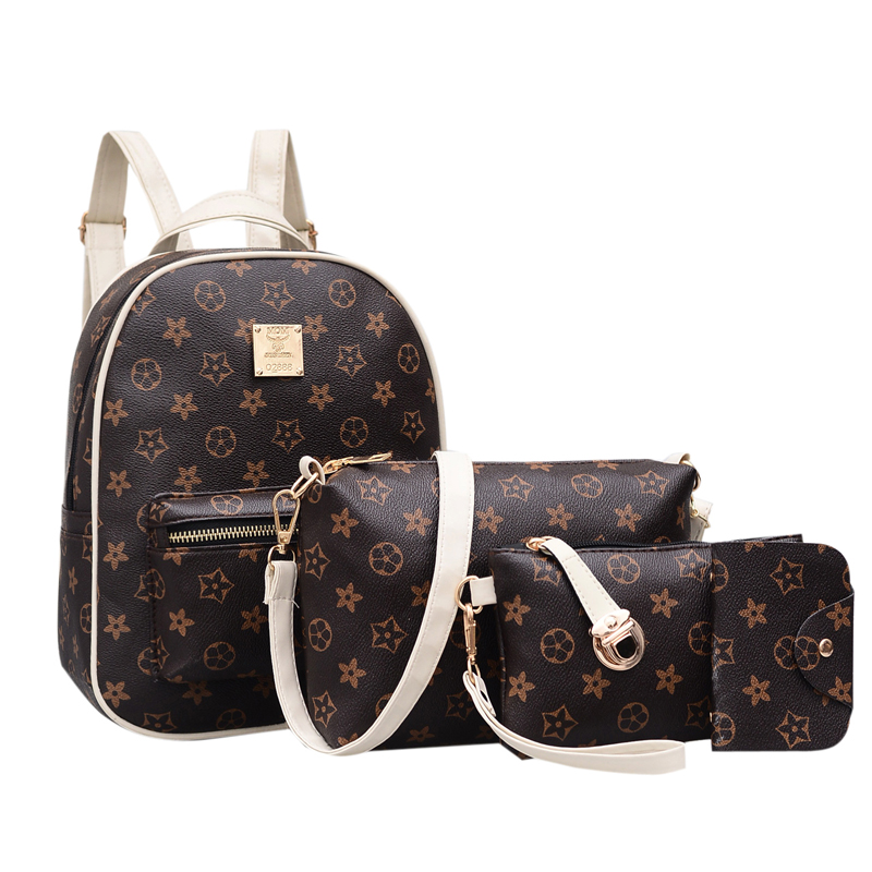 / 17四件套女包老花子母雙肩包休閑旅行包學院風書包印花背包pu女