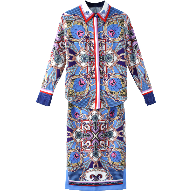 / 早秋裝2018新款時尚襯衫高腰印花半身裙兩件套港味成熟OL套裝女潮