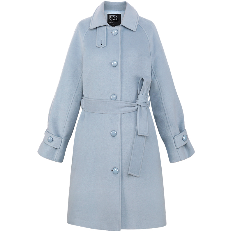 MG小象單排扣呢子大衣女中長款寬松韓版2018新款時尚秋冬毛呢外套