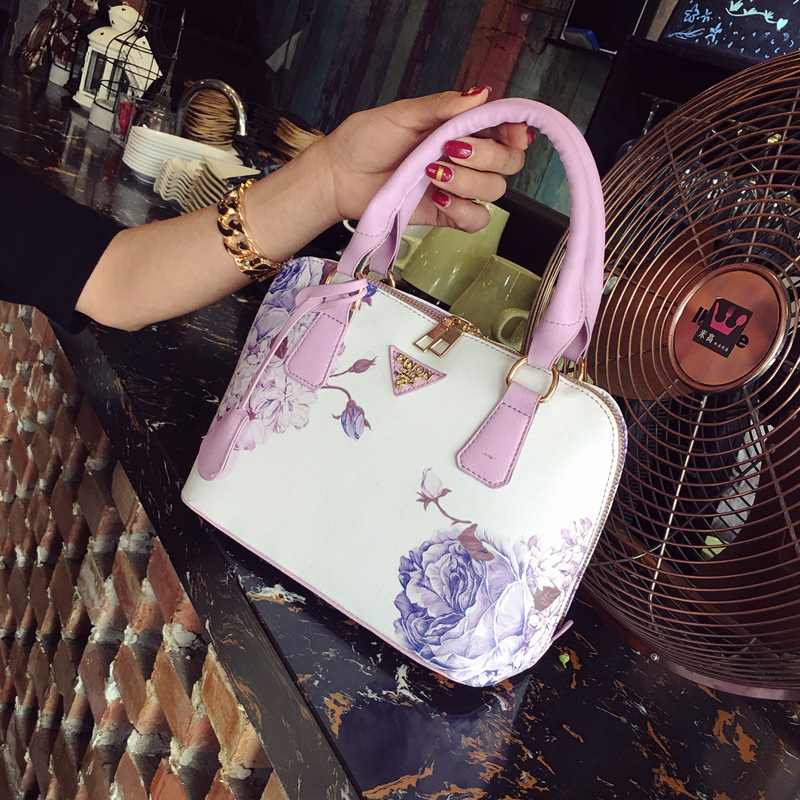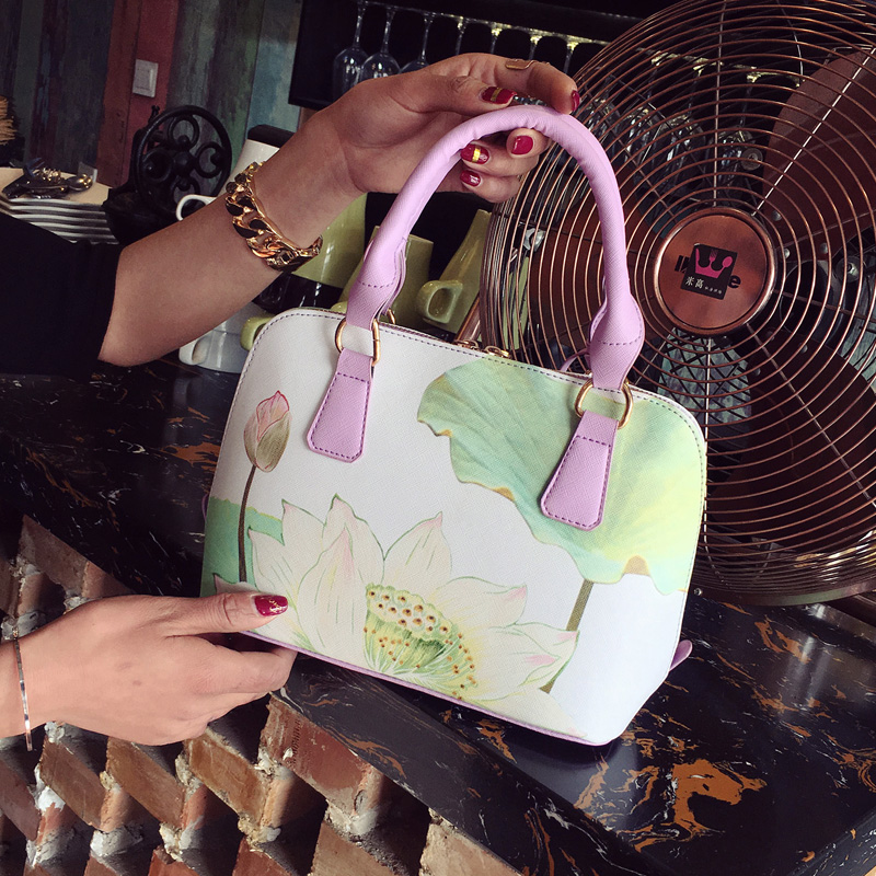 彩繪花朵小方包2017新款斜挎包女小包單肩包手提貝殼包