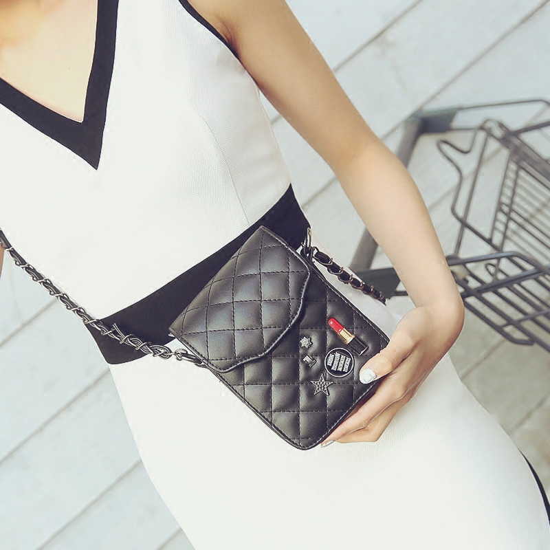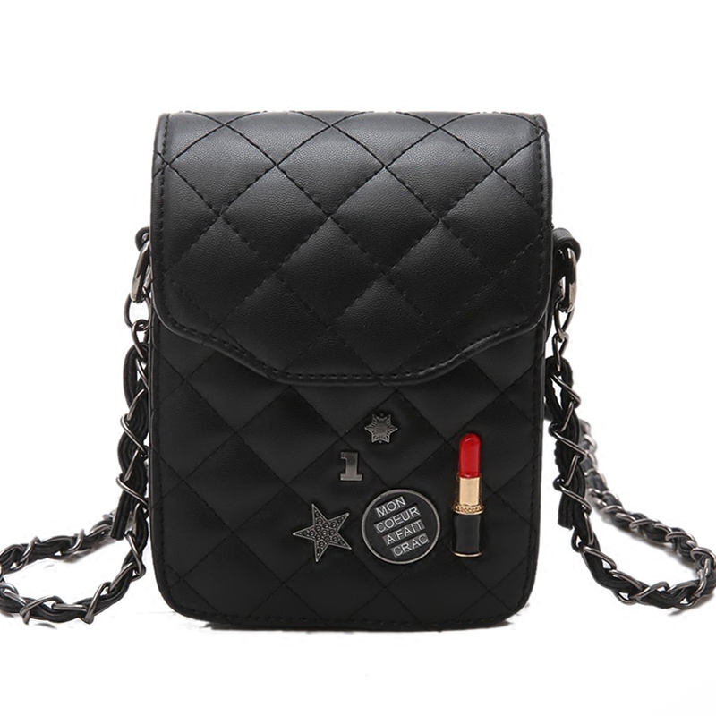 包包女新款潮菱格鏈條手機包韓版斜挎迷你小方包單肩女包小包