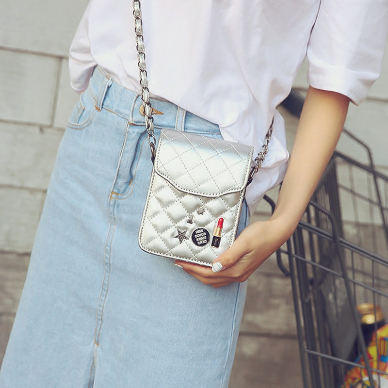 / 包包女新款潮菱格鏈條手機包韓版斜挎迷你小方包單肩女包小包