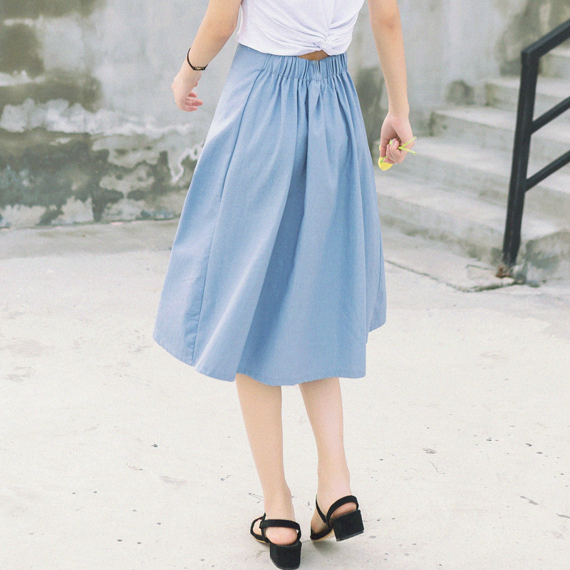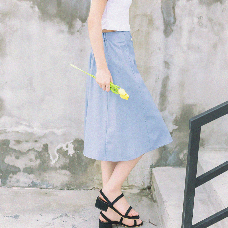 半身裙花樣百出,但是衣柜里怎么也少不了純色系款式
