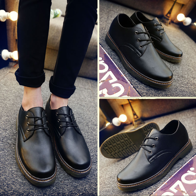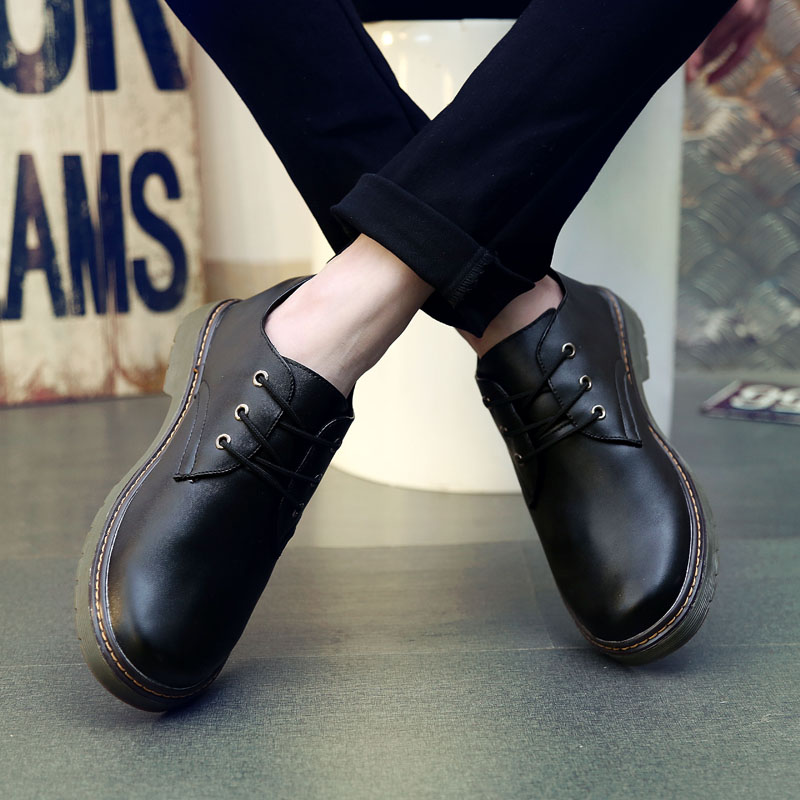 秋季韓版潮流男鞋子板鞋圓頭休閑皮鞋復古大頭鞋青年學生潮鞋