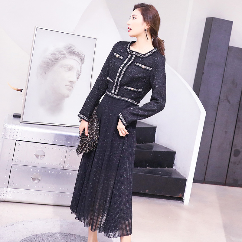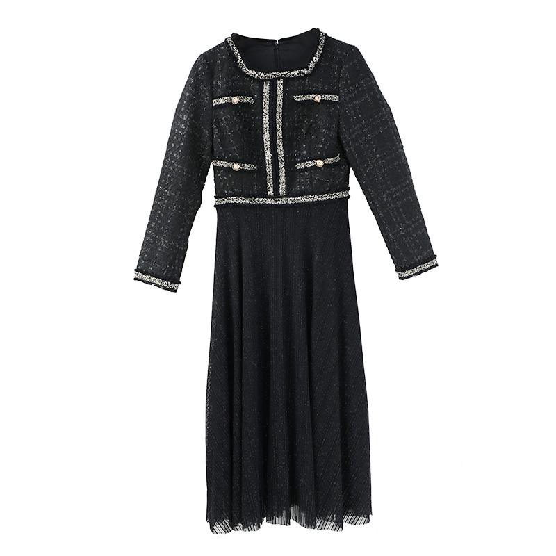 S秀淑女2018秋季新款韓版圓領長袖單件中長裙仙女氣質時尚連衣裙