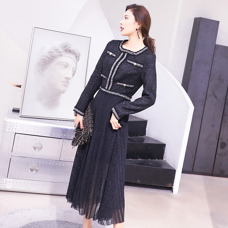 / S秀淑女2018秋季新款韓版圓領長袖單件中長裙仙女氣質時尚連衣裙