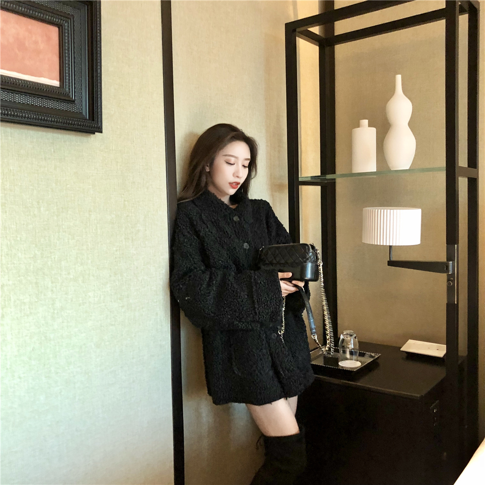 寬松加絨保暖時尚新款韓版百搭復古口袋系帶顯瘦翻領中長款外套女