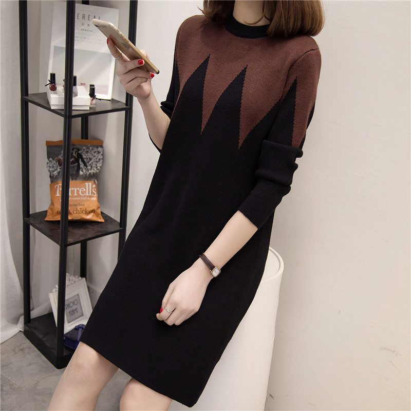 拼色長款針織衫套頭打底長袖韓版寬松毛衣女秋冬季女裝新款潮