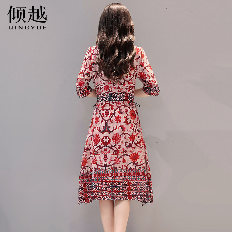 / 夏季印花連衣裙女韓版修身顯瘦復古氣質2017夏裝新款女裝a字裙子