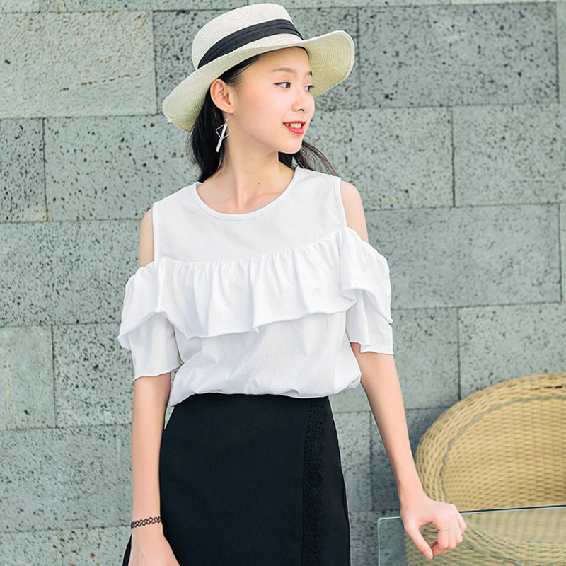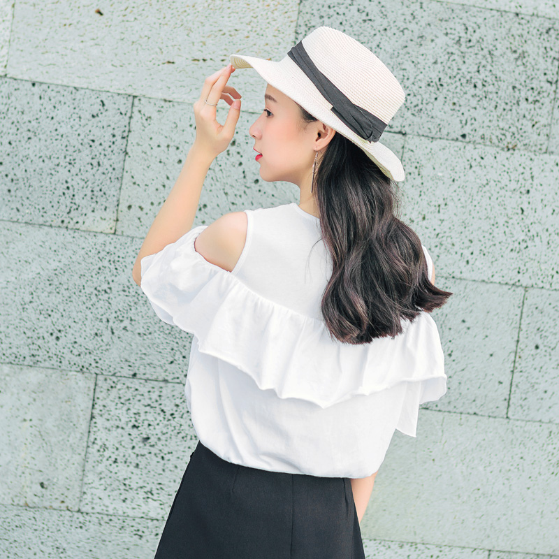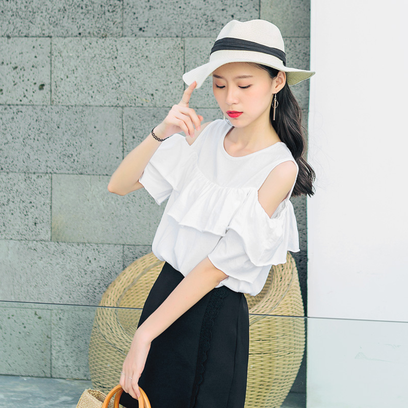 簡潔的圓領在露肩細節的加持下呈現出不一樣的嬌媚氣息