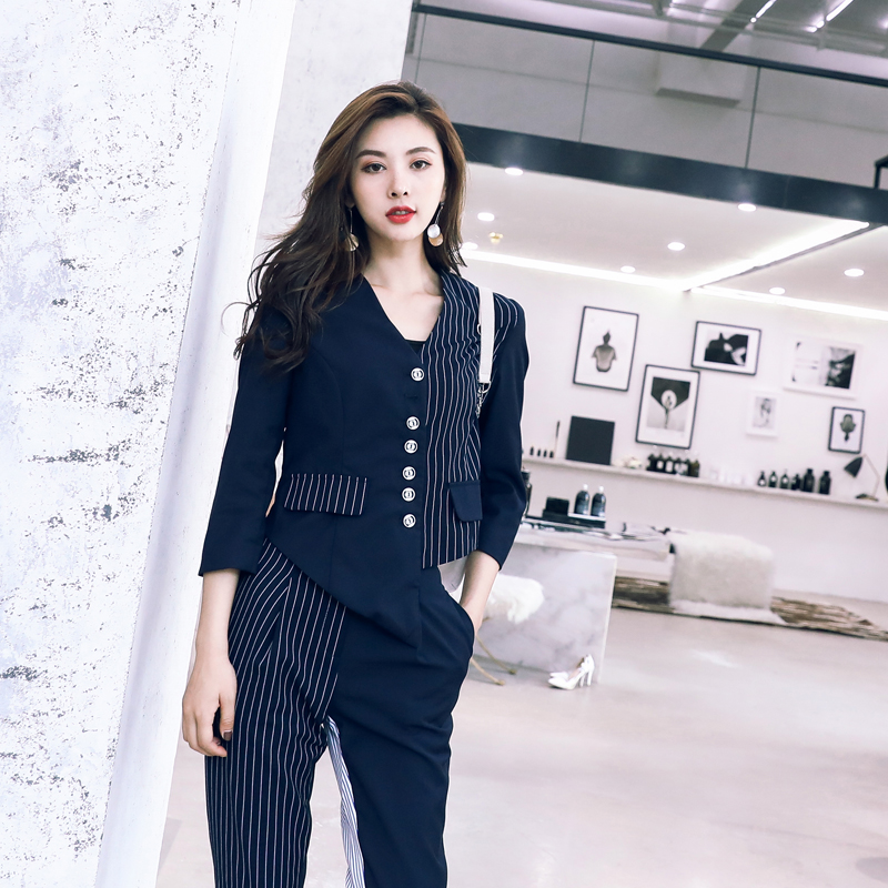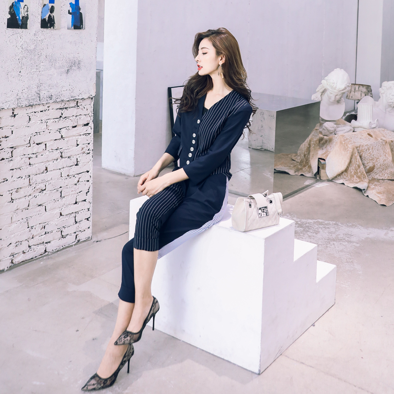 / 歐洲站秋正裝英倫chic女士小西裝套裝拼接西服休閑氣質2018兩件套