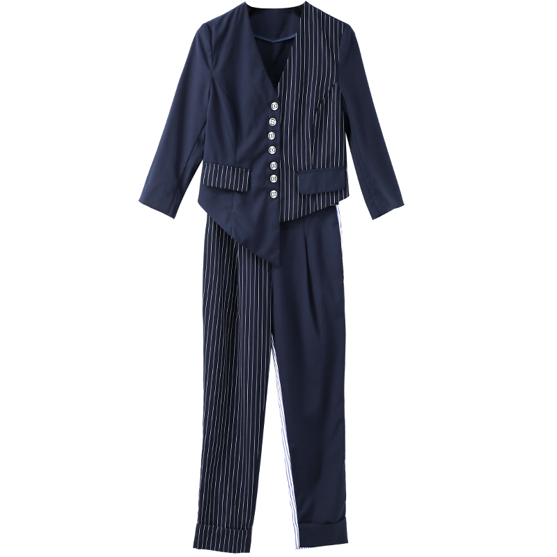 歐洲站秋正裝英倫chic女士小西裝套裝拼接西服休閑氣質2018兩件套