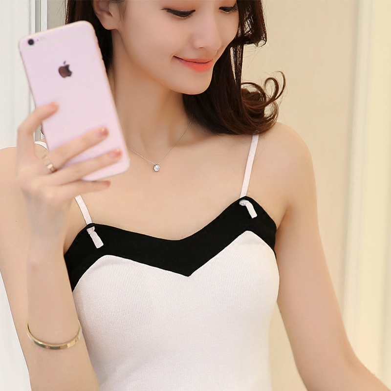 白色吊帶背心女內搭無袖上衣女夏天絲短款打底吊帶女薄款針織背心