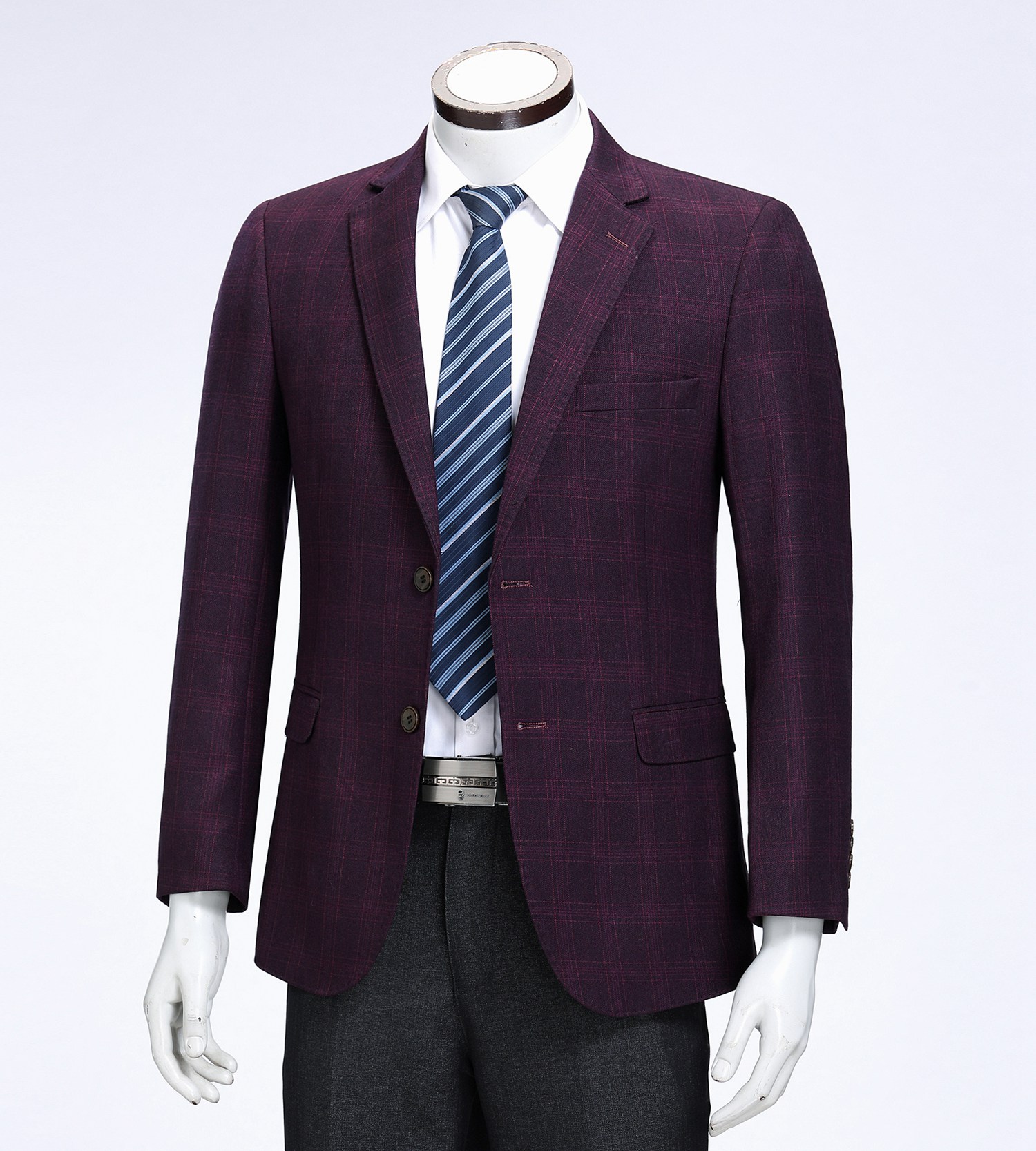 / 2018春裝新款品牌中年男士格子西服休閑男裝上衣羊毛單件西裝外套