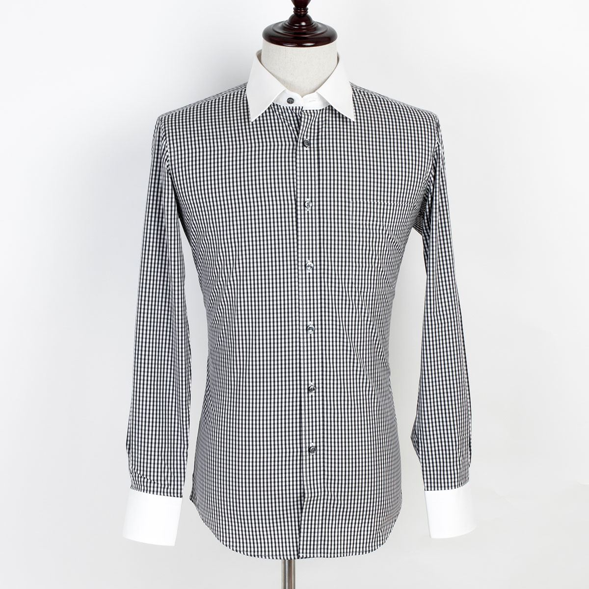 / 藍河秋秋款男裝黑白漸變格紋男士長袖高支棉襯衫商務白領襯衣