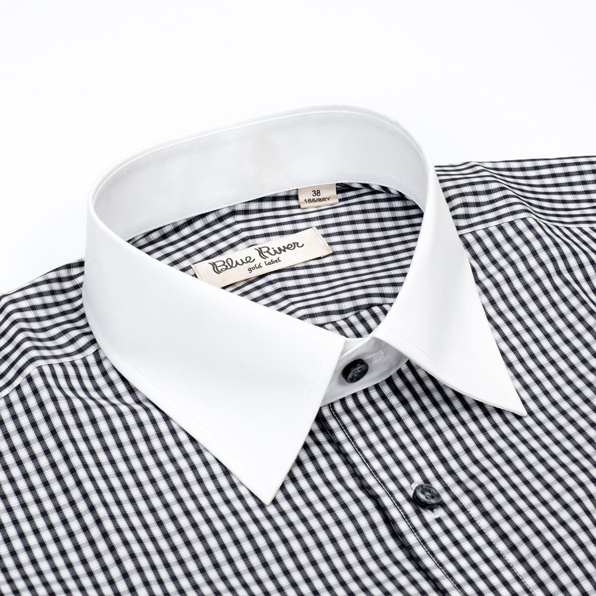 藍河秋秋款男裝黑白漸變格紋男士長袖高支棉襯衫商務白領襯衣