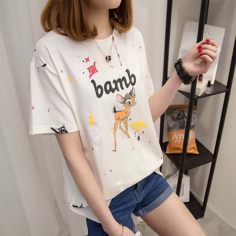 衣服女夏新款百搭韓版學生bf風t恤女短袖寬松休閑小清新上衣