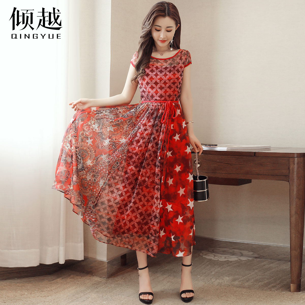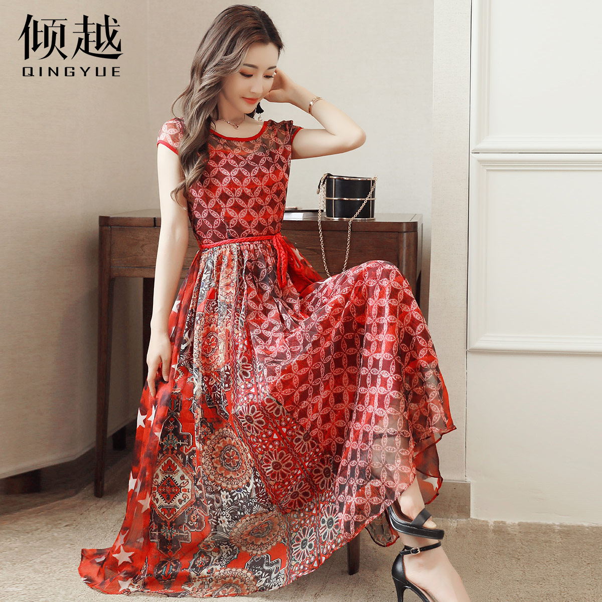 印花雪紡連衣裙女長裙2017夏季新款氣質韓版顯瘦夏天無袖長款裙子