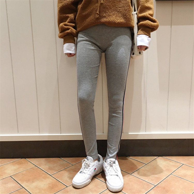 / 秋冬韓版百搭條紋小腳褲休閑褲時尚彈力顯瘦打底褲女外穿長褲