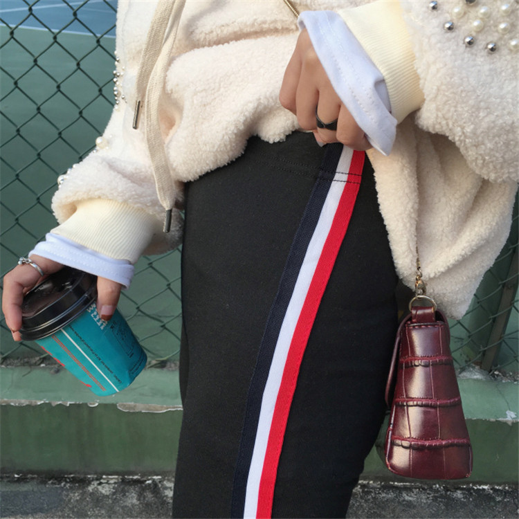 秋冬韓版百搭條紋小腳褲休閑褲時尚彈力顯瘦打底褲女外穿長褲