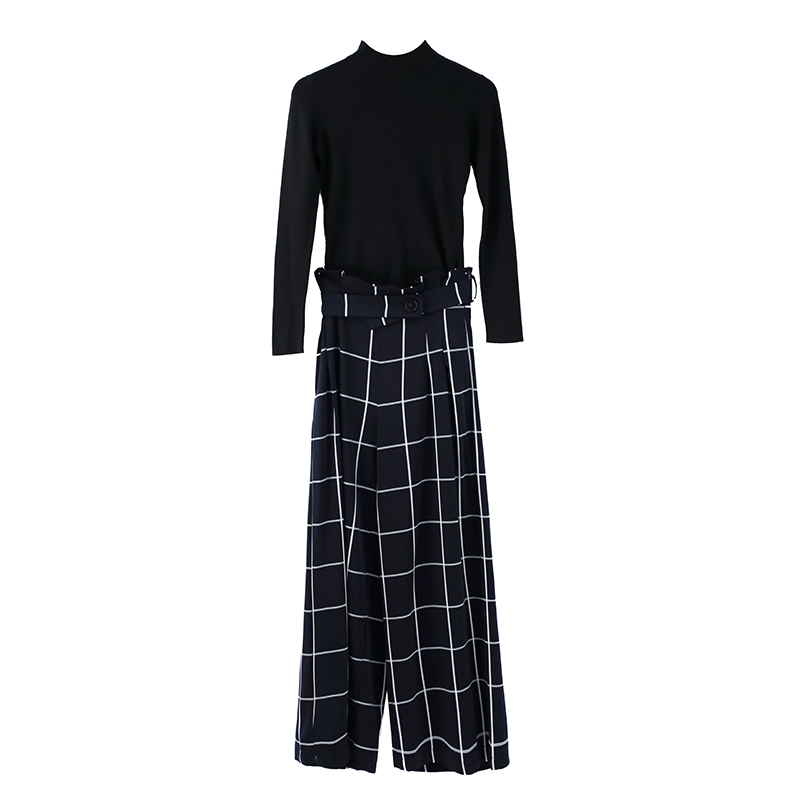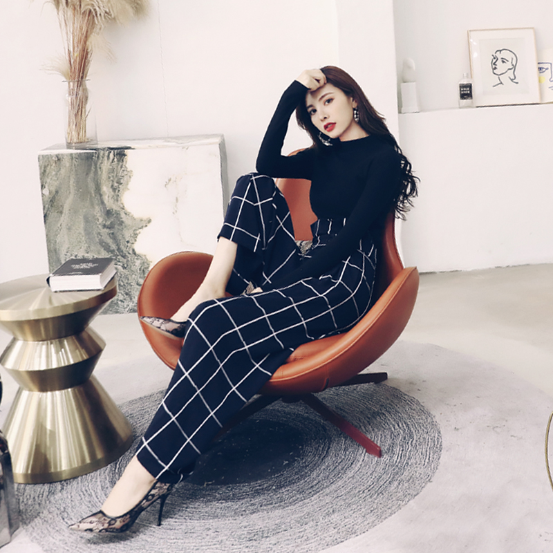 初秋裝女2018新款網紅洋氣女神兩件套長袖針織衫高腰闊腿褲套裝女