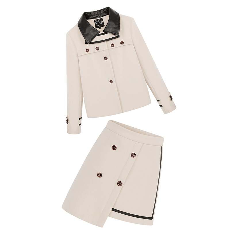 呢外套-杏色|半裙-杏色