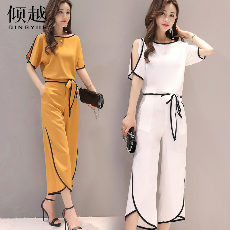 時尚套裝女夏季2017新款洋氣女裝韓版小香風顯瘦氣質闊腿褲兩件套