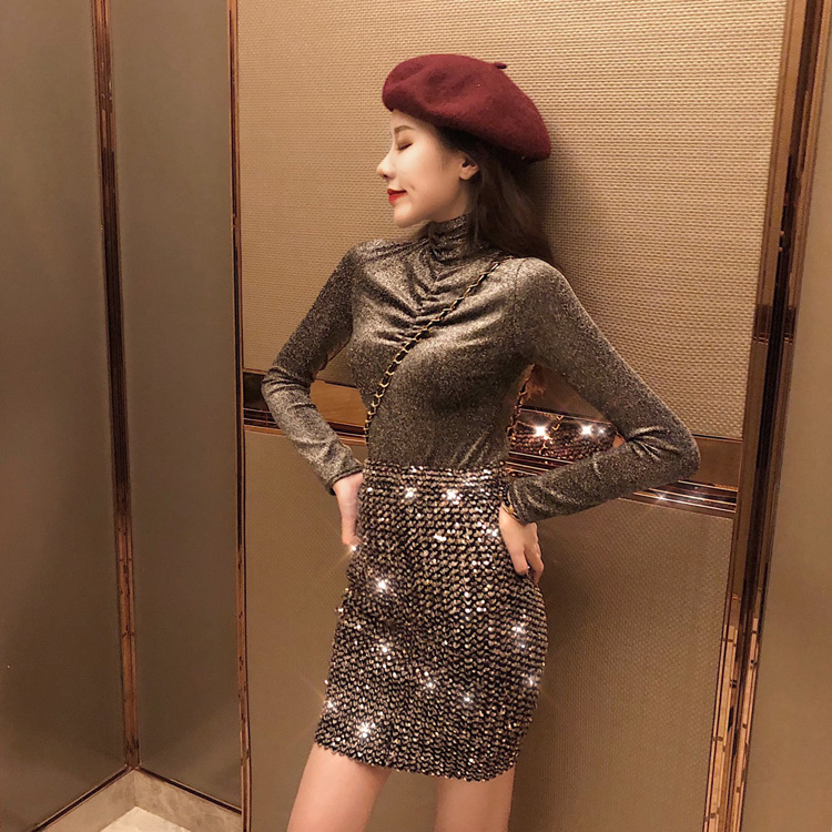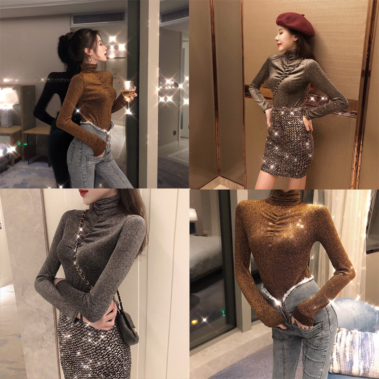 港味小心機高領新款韓版秋冬彈力時尚chic打底衫百搭修身長袖上衣