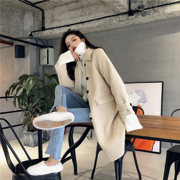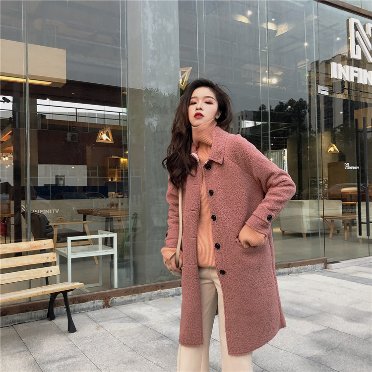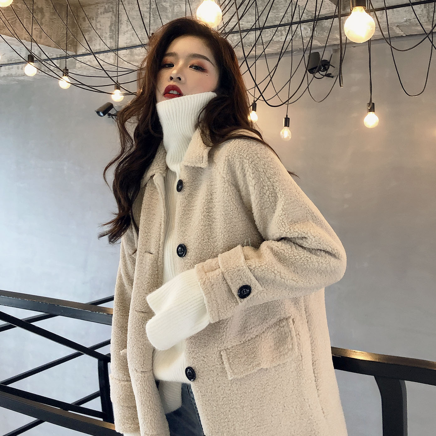 / 復古溫柔慵懶風加厚單排扣立領羊羔毛外套女秋冬2018新款棉衣棉服