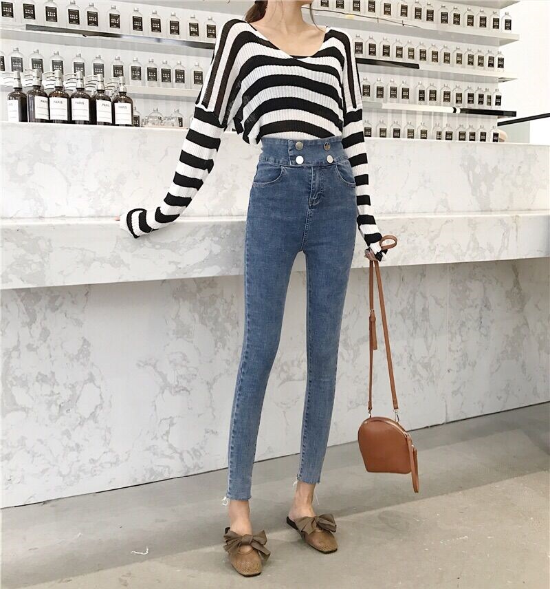 / 2018秋裝新款韓版九分褲復古chic百搭牛仔鉛筆褲緊身小腳牛仔褲女