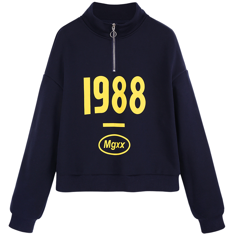 MG小象立領套頭衛衣女秋2018新款韓版長袖寬松學生字母印花上衣