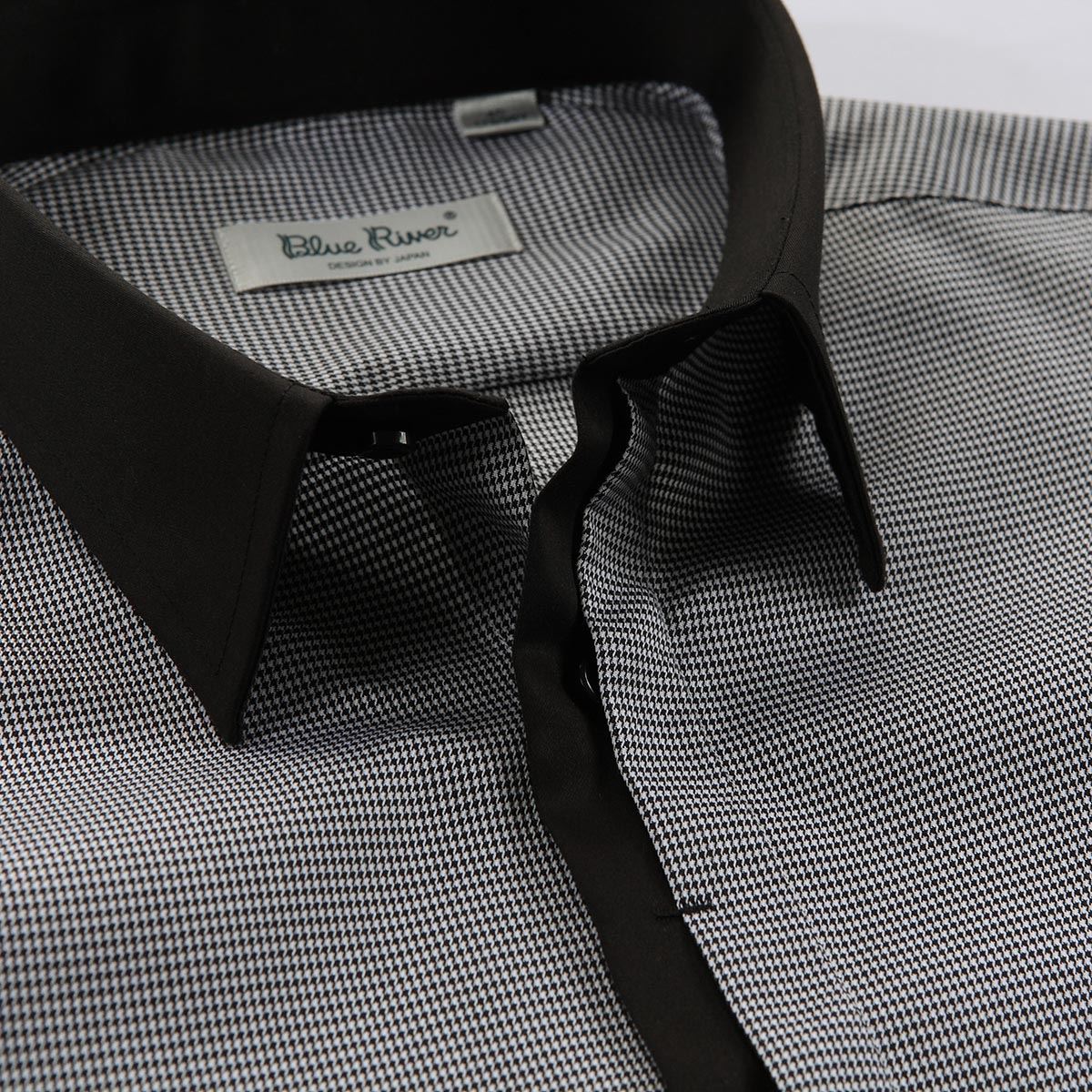 藍河襯衫長袖襯衣商務休閑男裝修身純棉千鳥格純棉免燙男裝正裝