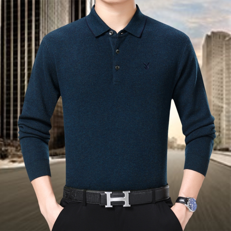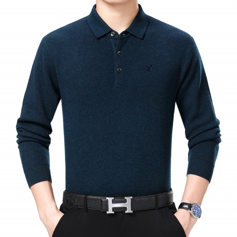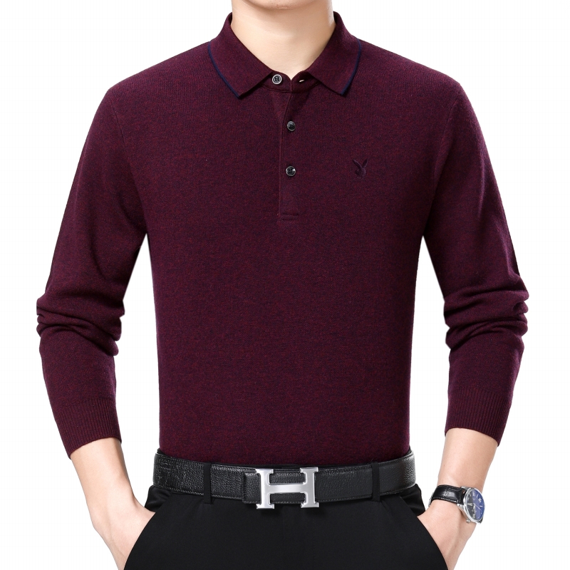 冬裝花花公子正品中年男士山羊絨毛衣商務男裝翻領加厚大碼羊毛衫