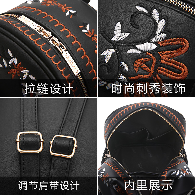 雙肩包女韓版pu時尚個性百搭蝴蝶刺繡女士包包新款潮迷你背包