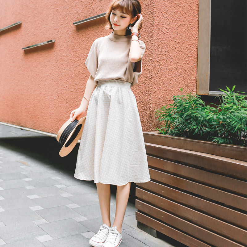 / 夏季新款格子百褶裙中長款女學生高腰百搭韓版a字半身長裙子
