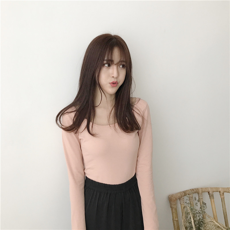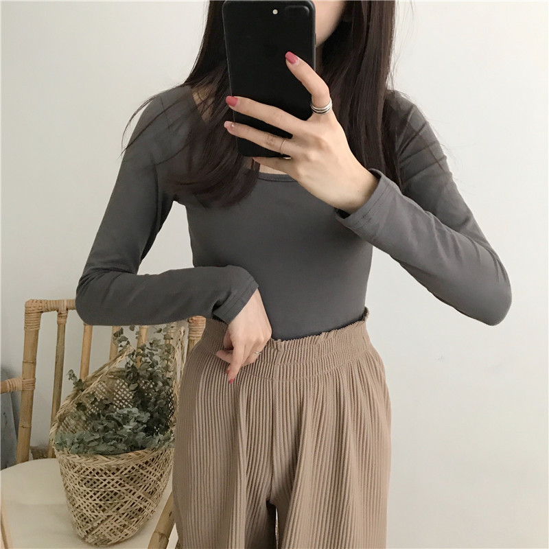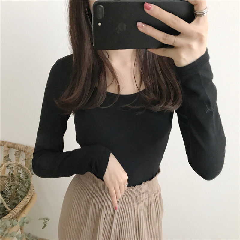 chic早秋上衣女2018新款修身大圓領打底衫氣質款長袖露背芭蕾T恤