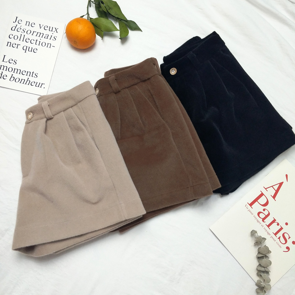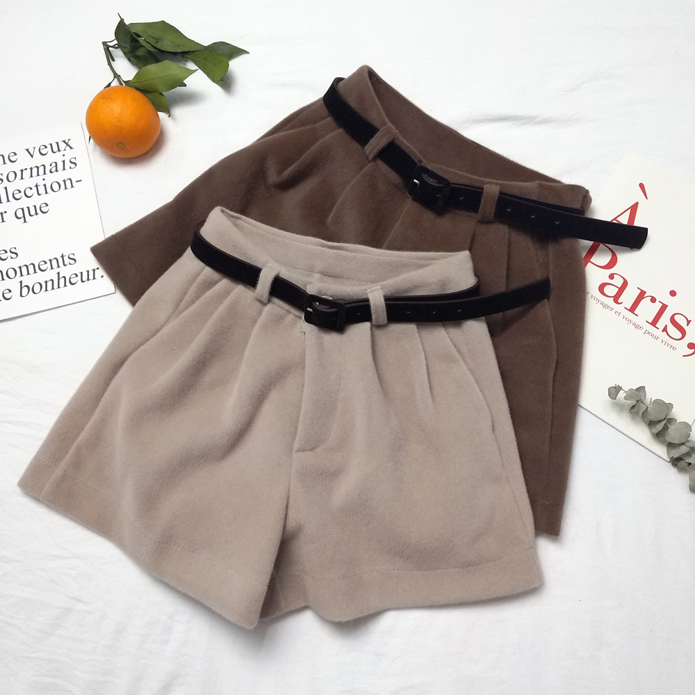 / 港味復古新款chic時尚秋冬百搭毛絨闊褲腿高腰裙褲短褲女潮送腰帶