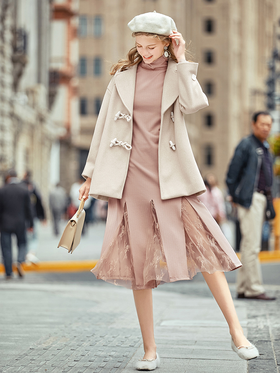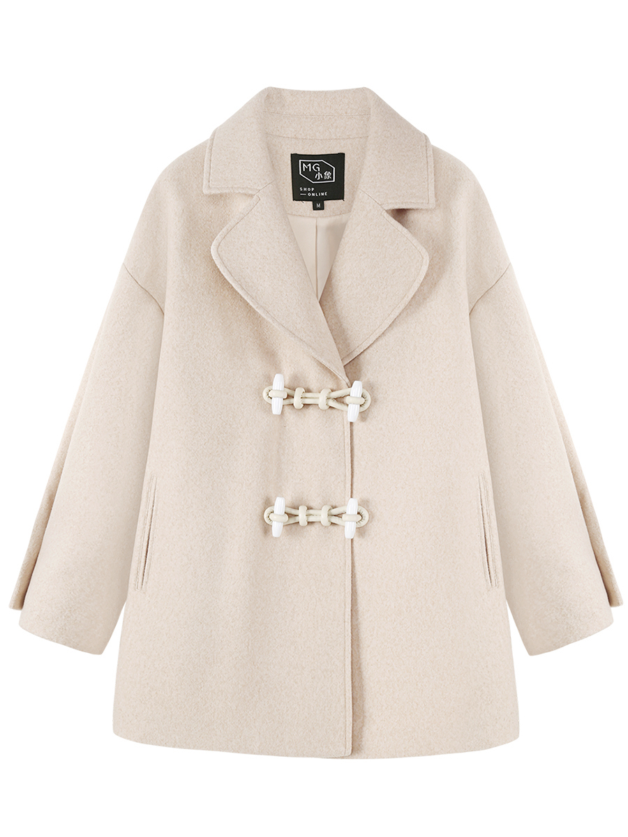 MG小象牛角扣冬季毛呢外套女小個子寬松2018新款學生甜美呢子大衣