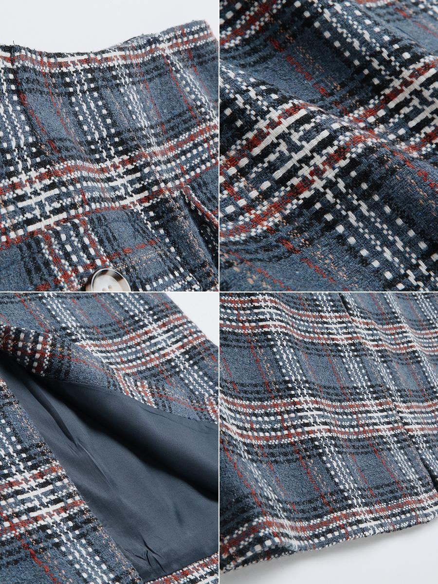 MG小象高腰格子半身裙女中長款秋冬2018新款港味復古開叉a字裙子
