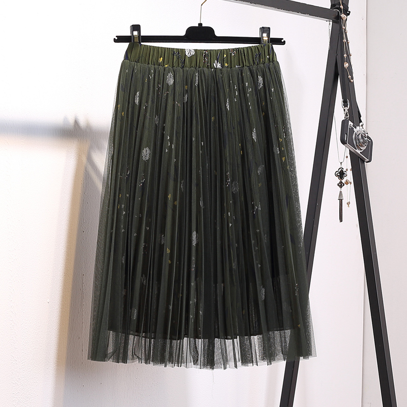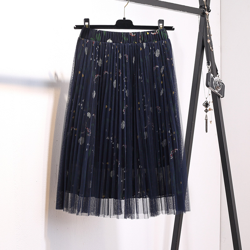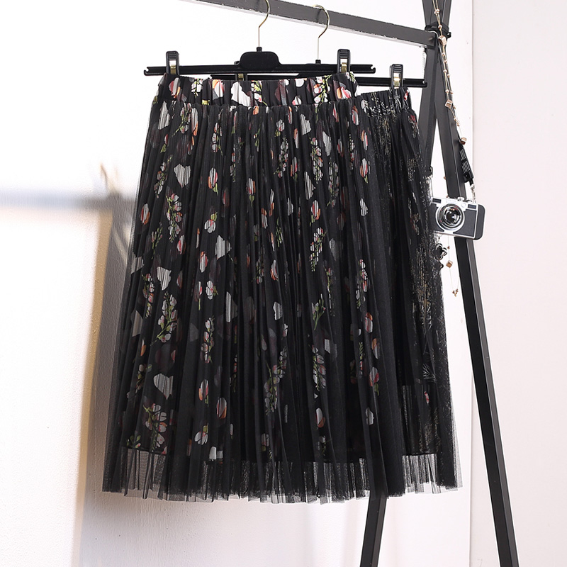 / 中長款碎花雪紡網紗裙春夏季新款韓版女百搭百褶蓬蓬半身裙子