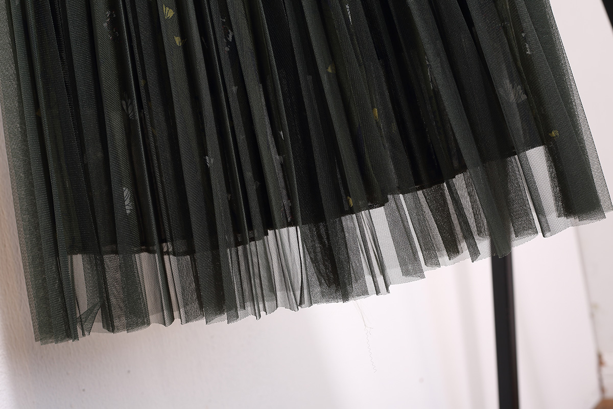 綠色 網紗雪紡中長裙S719