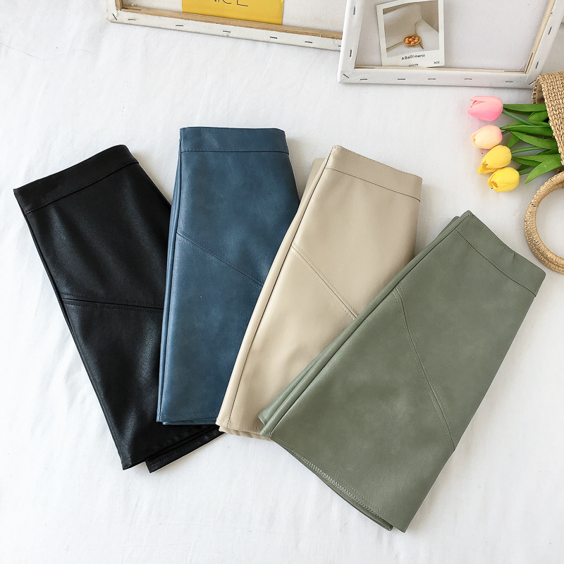 / 秋季新款韓版高腰時尚復古chic百搭拼接pu皮短裙潮半身裙A字裙女