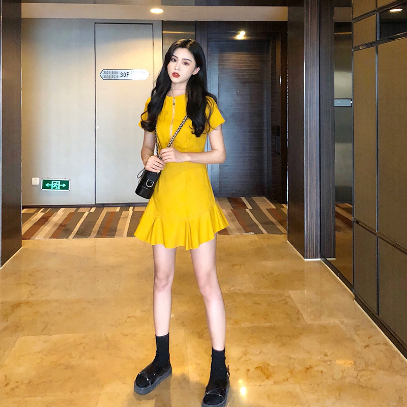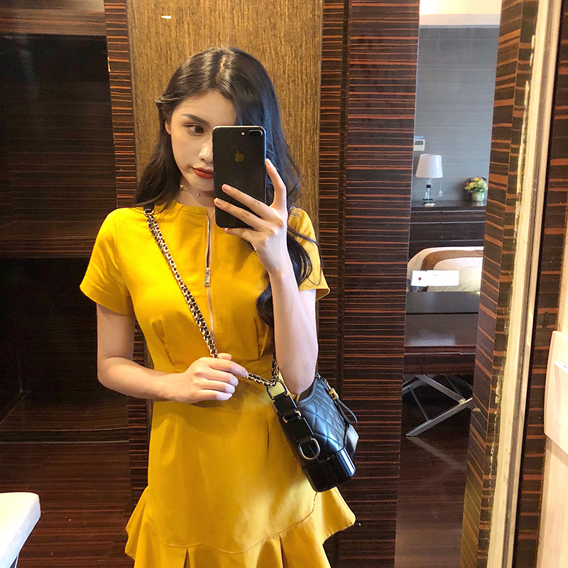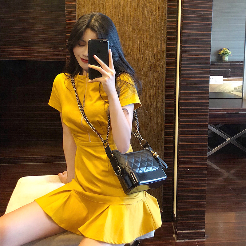 2018韓版新款收腰顯瘦仙女裙復古chic百搭時尚連衣裙溫柔少女短裙