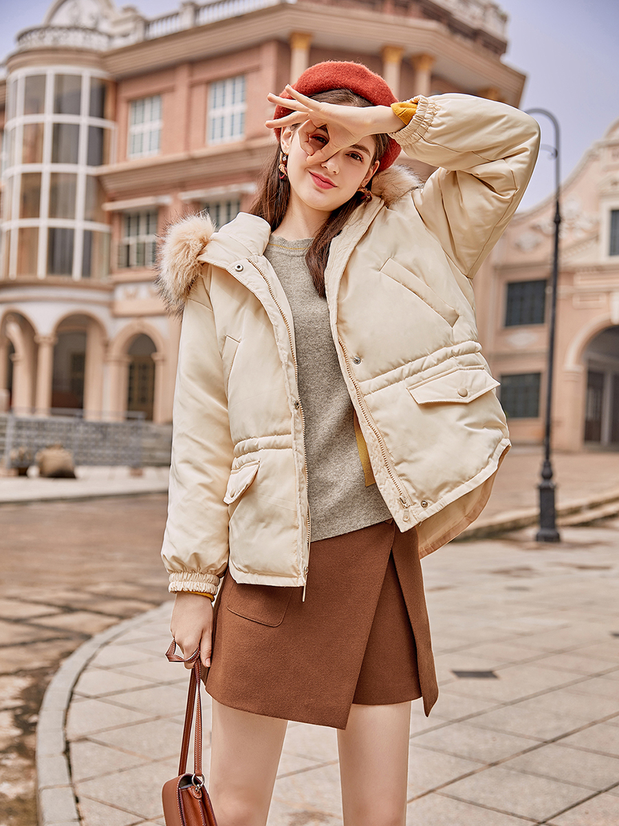 【直降140元】【146元雙11清倉】 MG小象加厚大毛領繡花學生棉衣