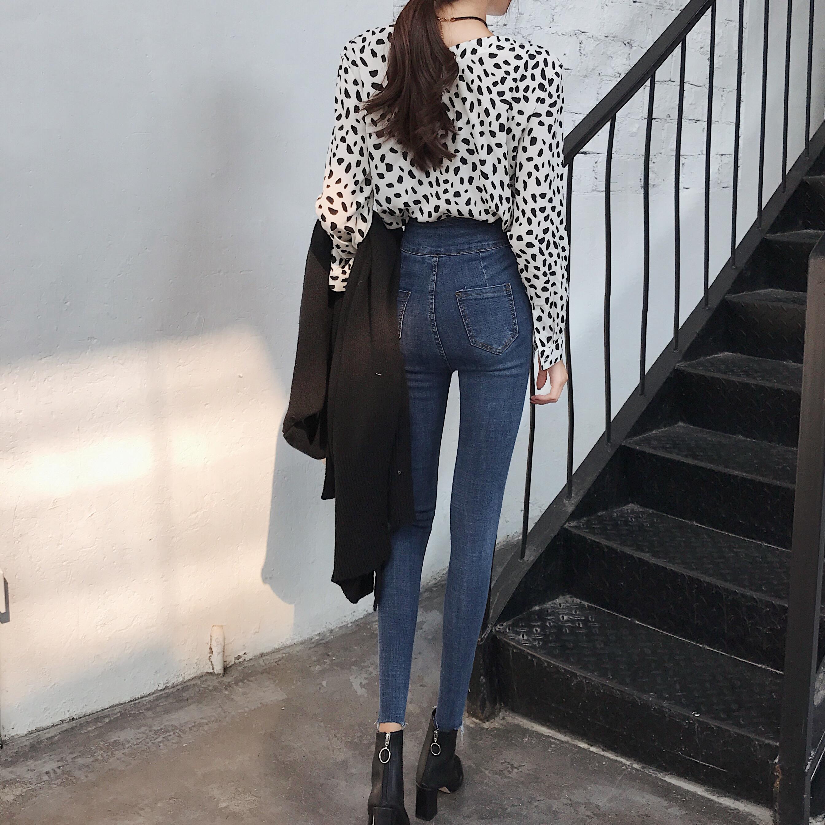 / 韓國港味秋季新款chic復古緊身小腳鉛筆褲修身顯瘦牛仔褲百搭褲子