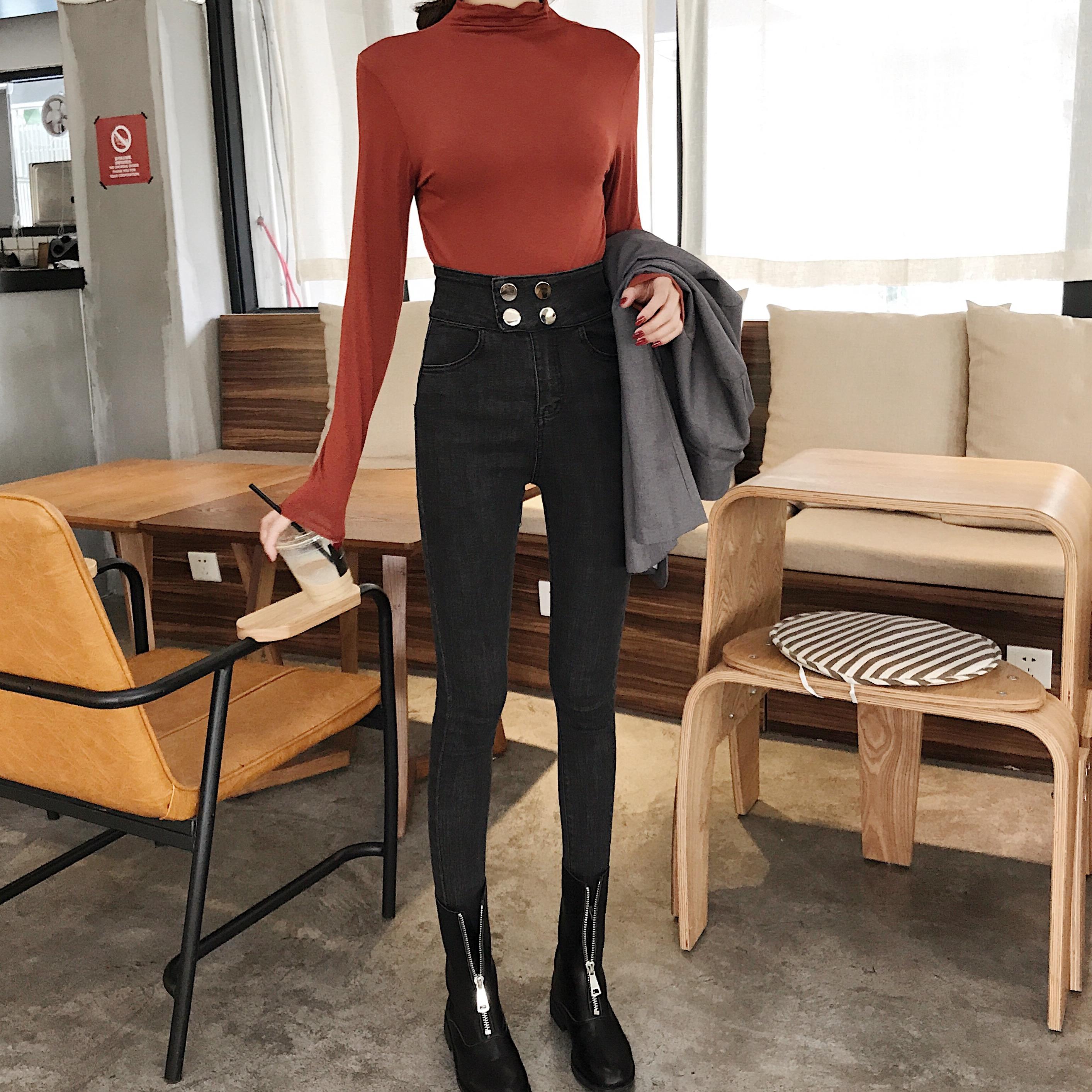 韓國港味秋季新款chic復古緊身小腳鉛筆褲修身顯瘦牛仔褲百搭褲子