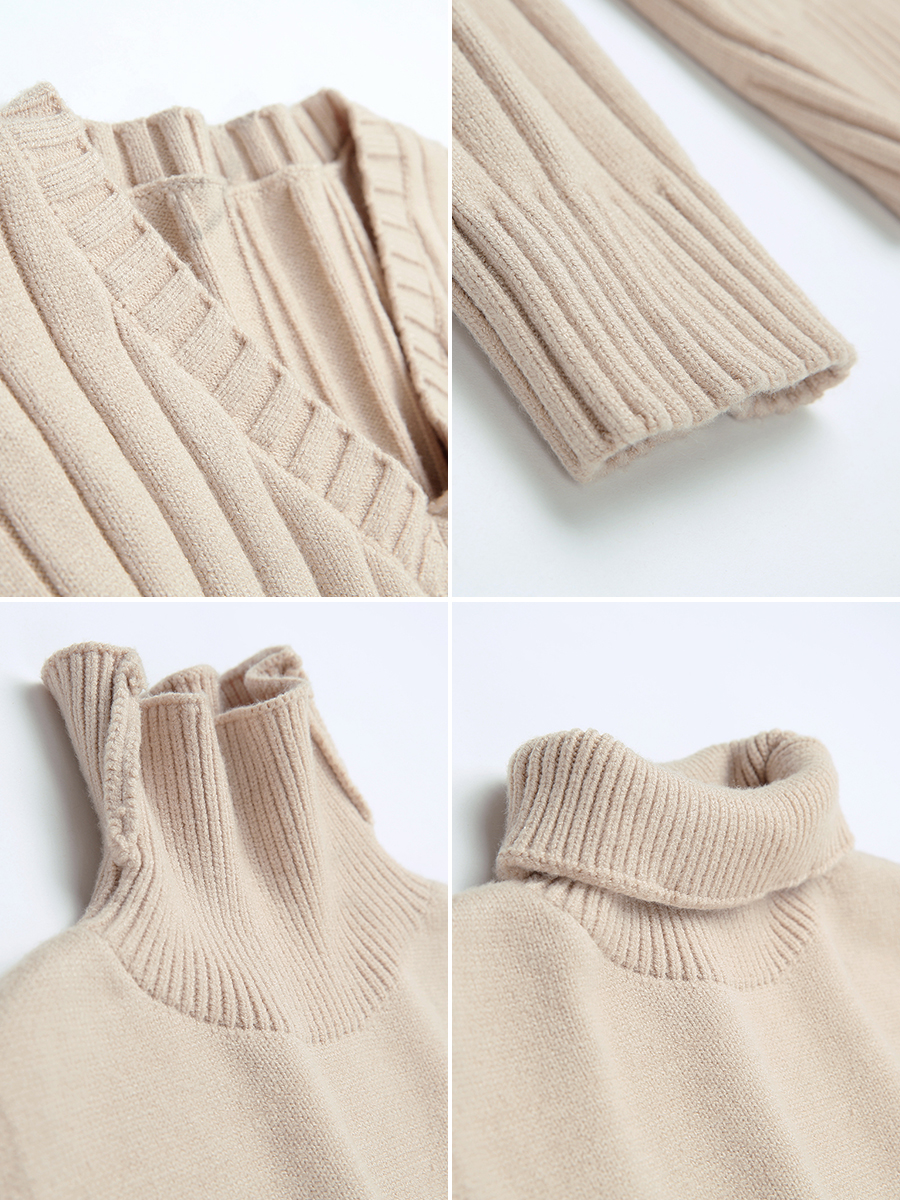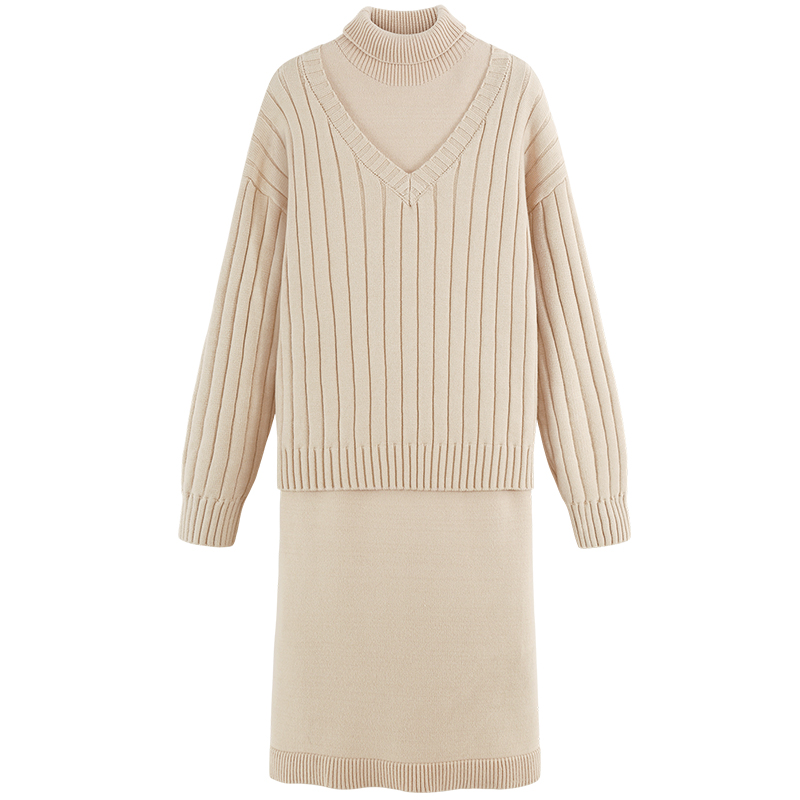 MG小象無袖高領連衣裙女冬季新款寬松v領套頭毛衣中長款針織裙子