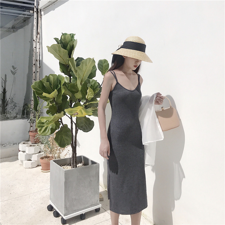 / 春秋裝2018新款復古chic風性感露背吊帶中長款顯瘦氣質修身連衣裙