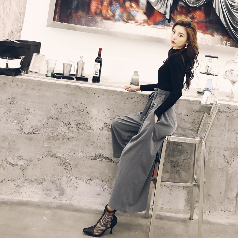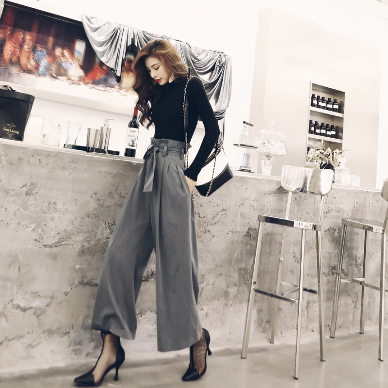 早秋季2018新款網紅氣質女神俏皮洋氣針織衫時尚闊腿褲兩件套裝女