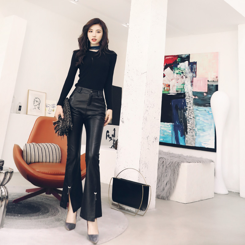 / 針織毛衣套裝女秋季2018新款時尚氣質顯瘦開叉皮褲子時髦秋冬兩件